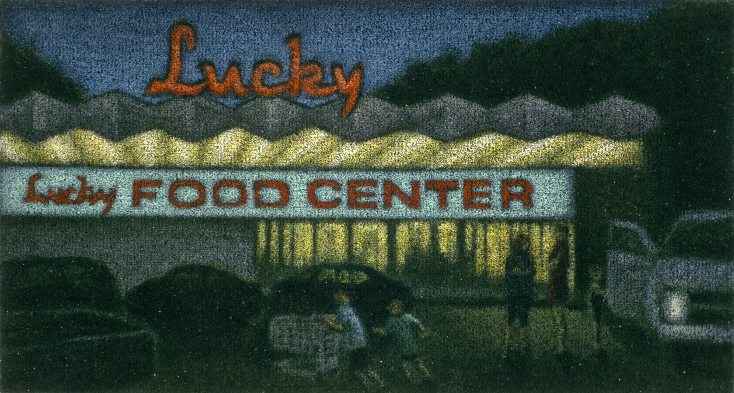 Long Beach Lot Sunset, 1999, oilstick on astroturf, 42 x 74 inches