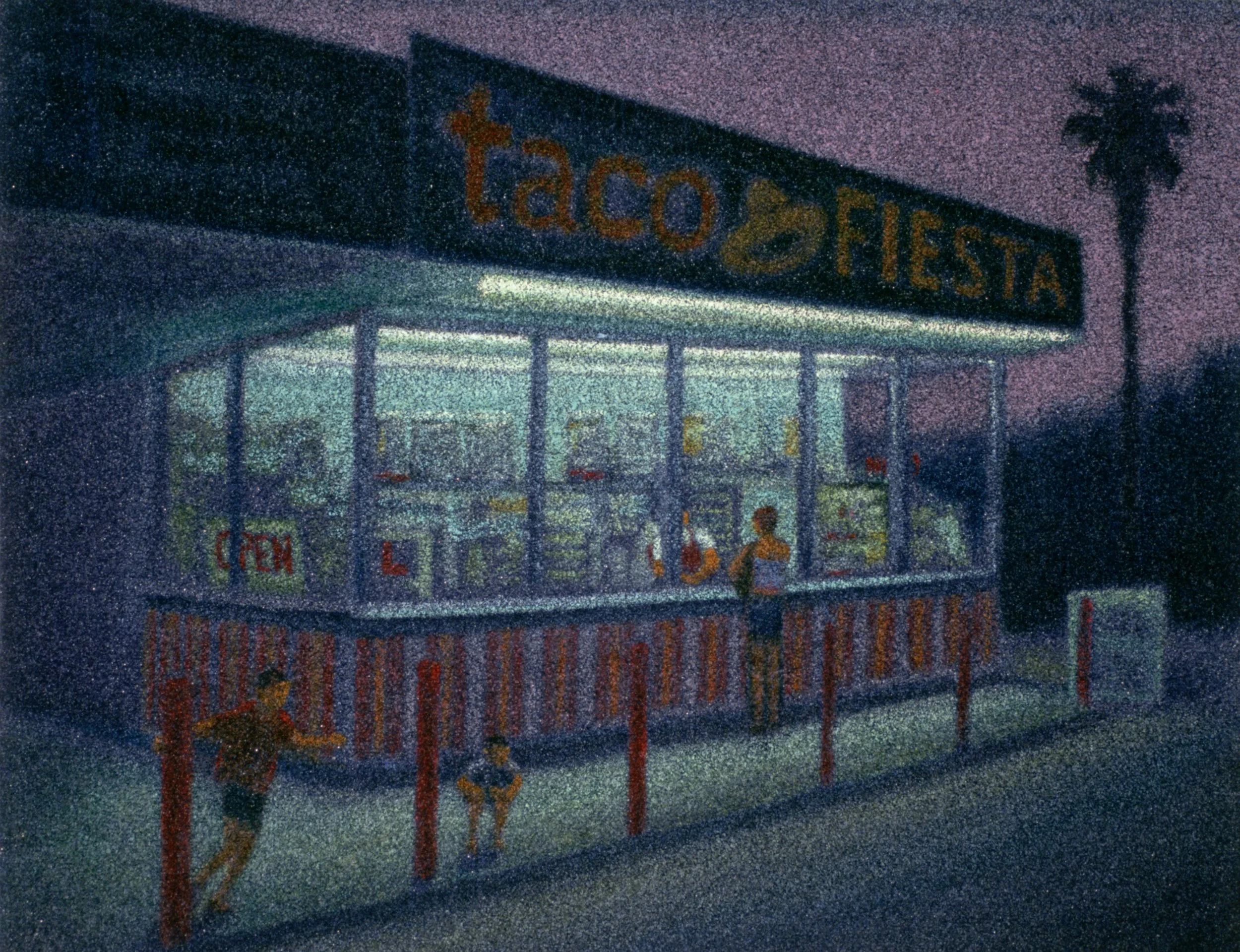 Taco Fiesta 2, 2000, oilstick on astroturf, 40 x 52 inches