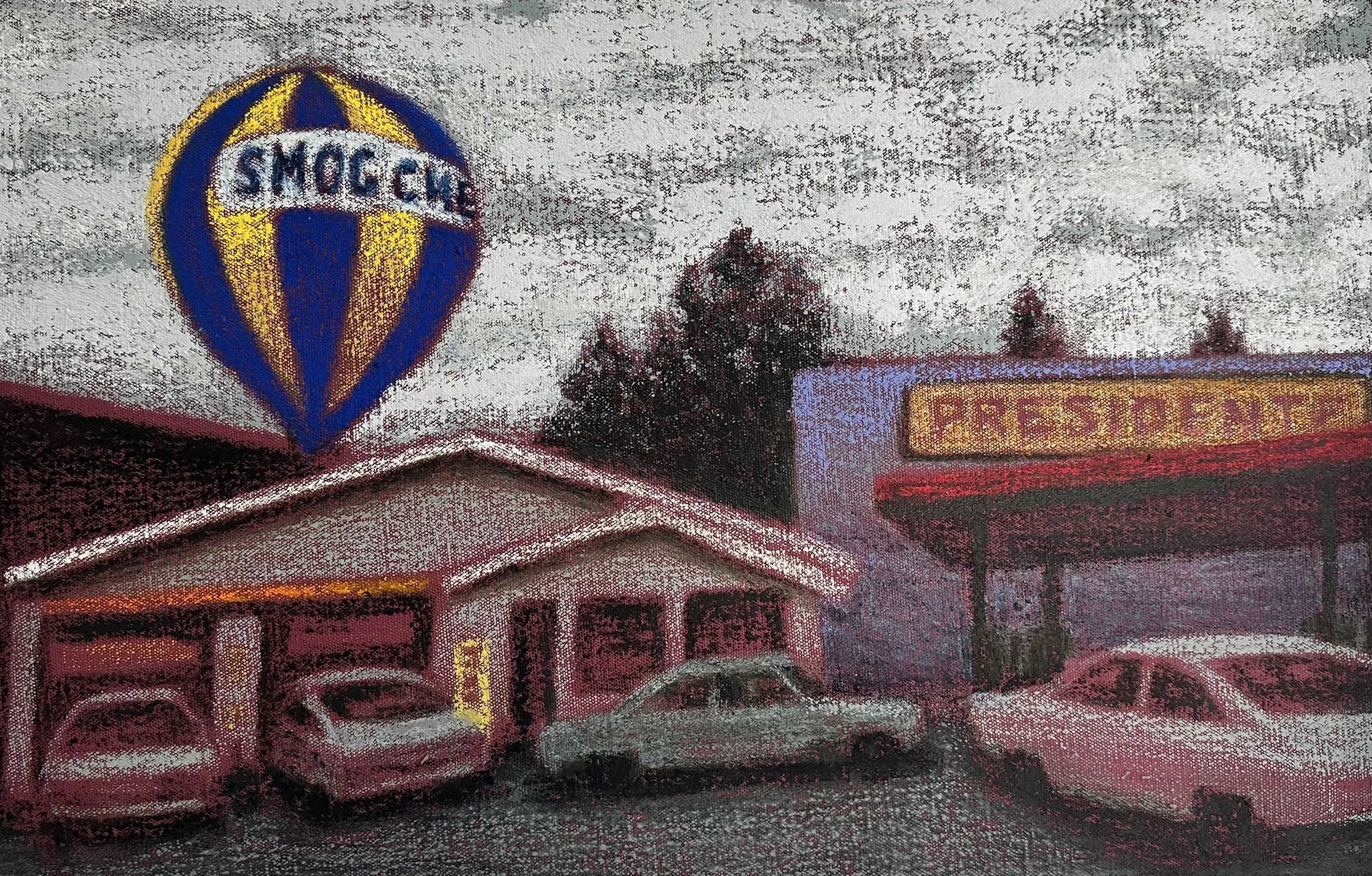 Smog Check Presidente, 2024, oilstick on linen, 18 x 28 inches