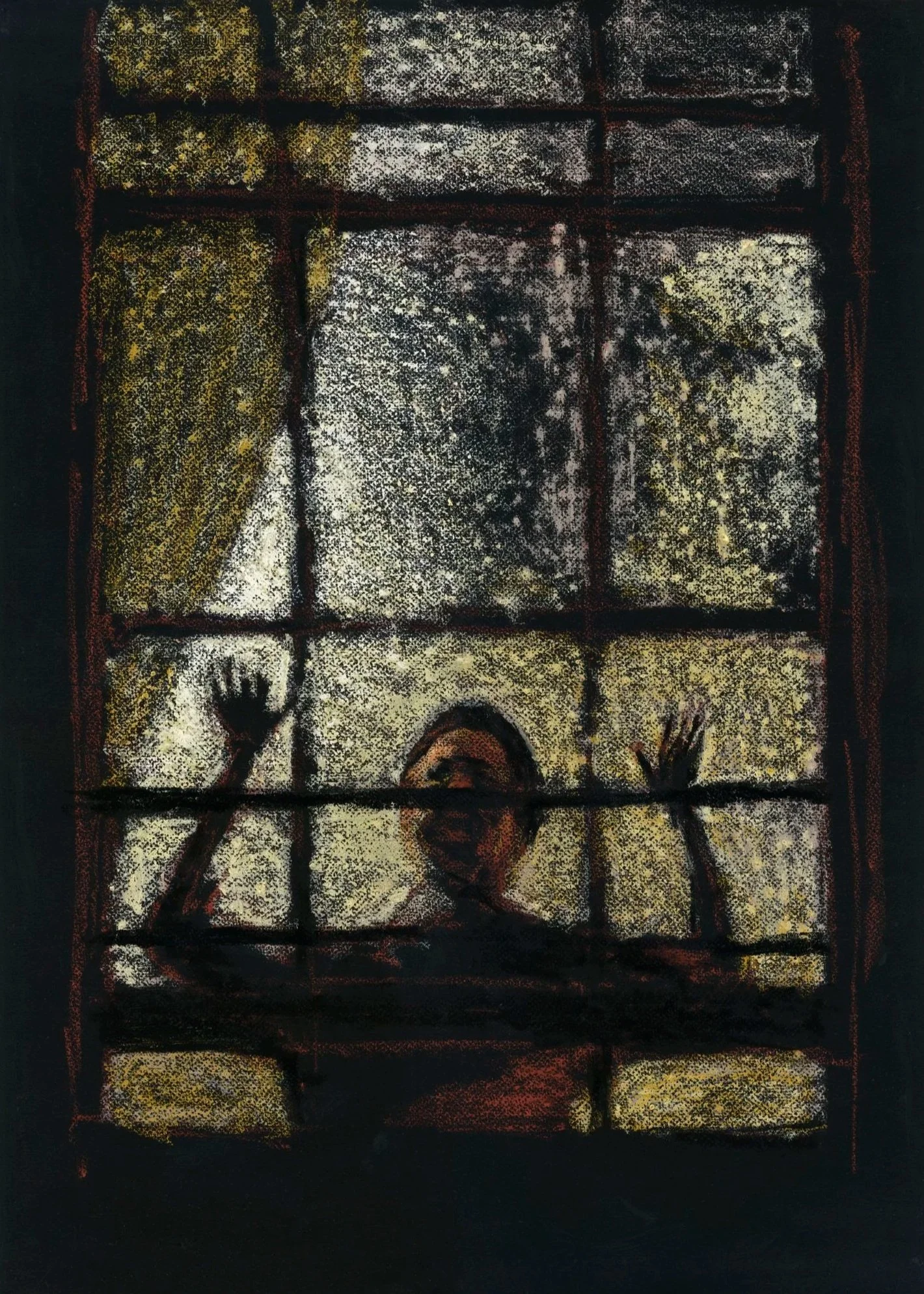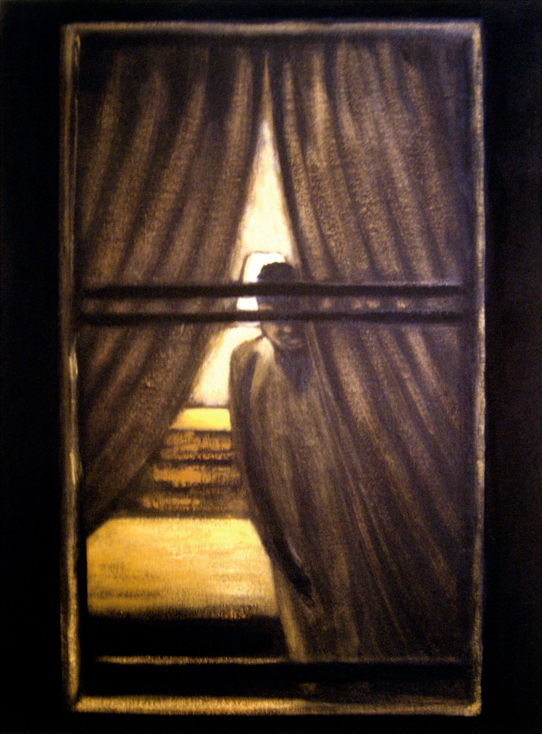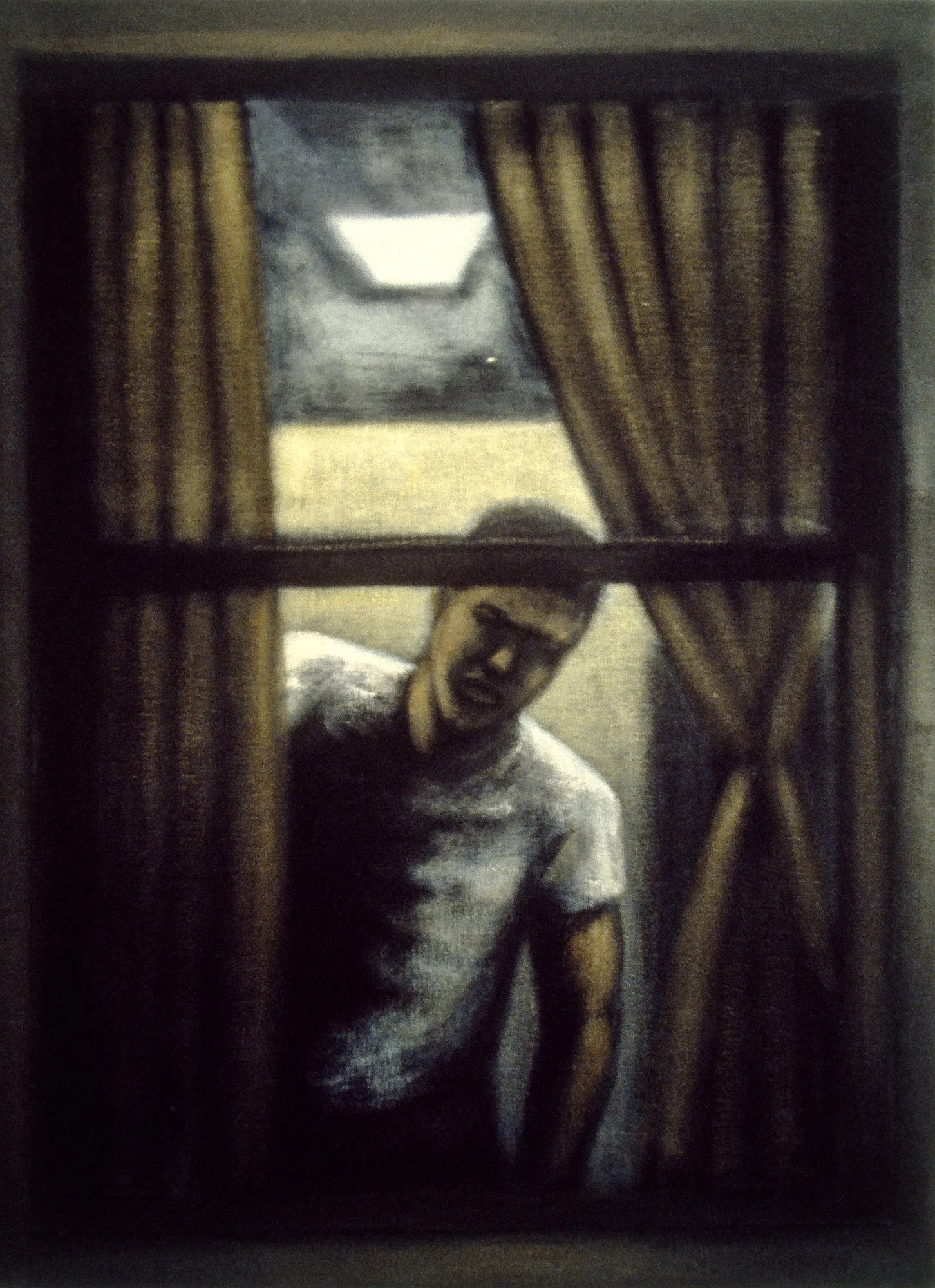 Woman at the Window, 1983, oilstick on canvas, 42 x 19 inches
